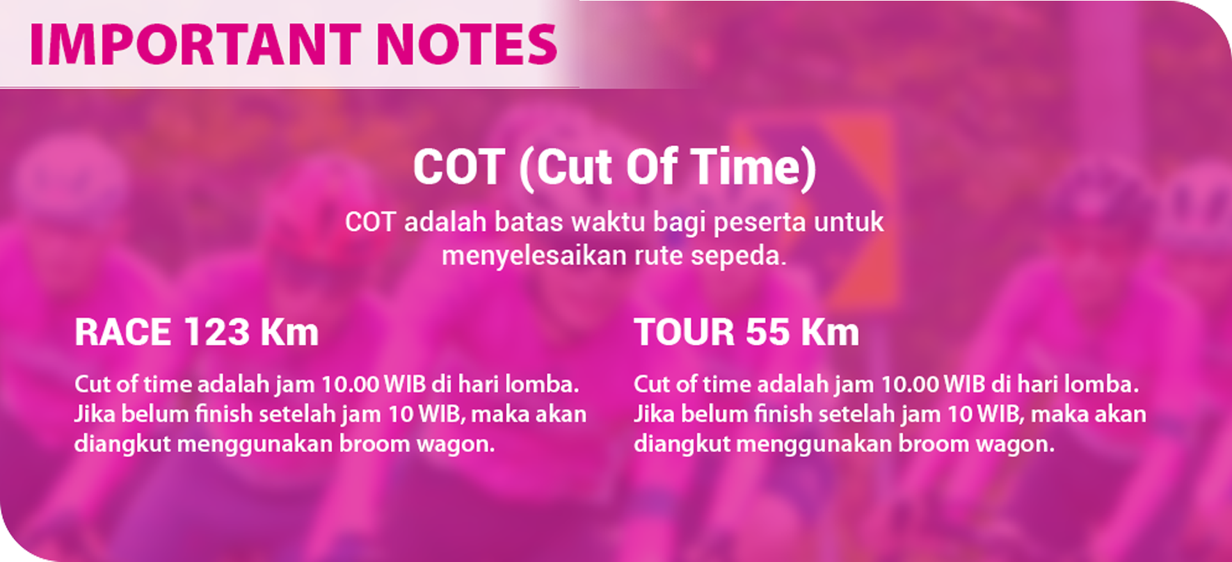 Kategori 123 KM merupakan ajang balap sepeda yang akan diikuti oleh para peserta profesional dari Nasional dan Internasional akan menjelajahi destinasi - destinasi wisata indah di daerah Yogyakarta.